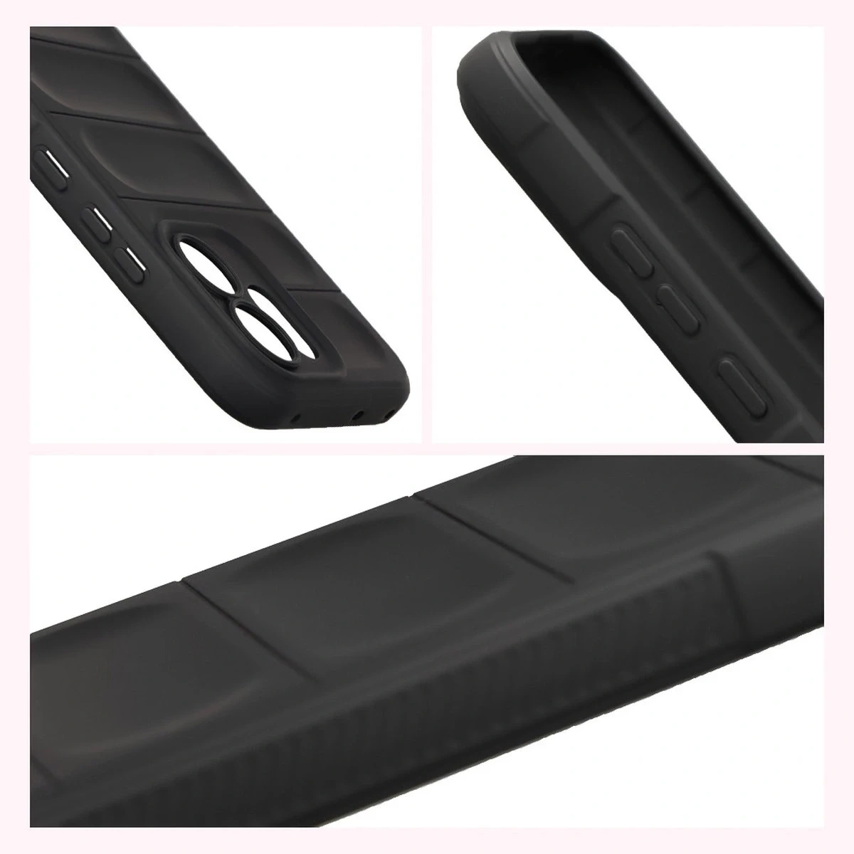 Wzmocnione narożniki oraz delikatnie podniesione krawędzie zapewniają dodatkową ochronę, z kolei teksturowane boki pozwalają pewniej trzymać telefon, zapobiegając przypadkowemu wysunięciu się urządzenia z dłoni.