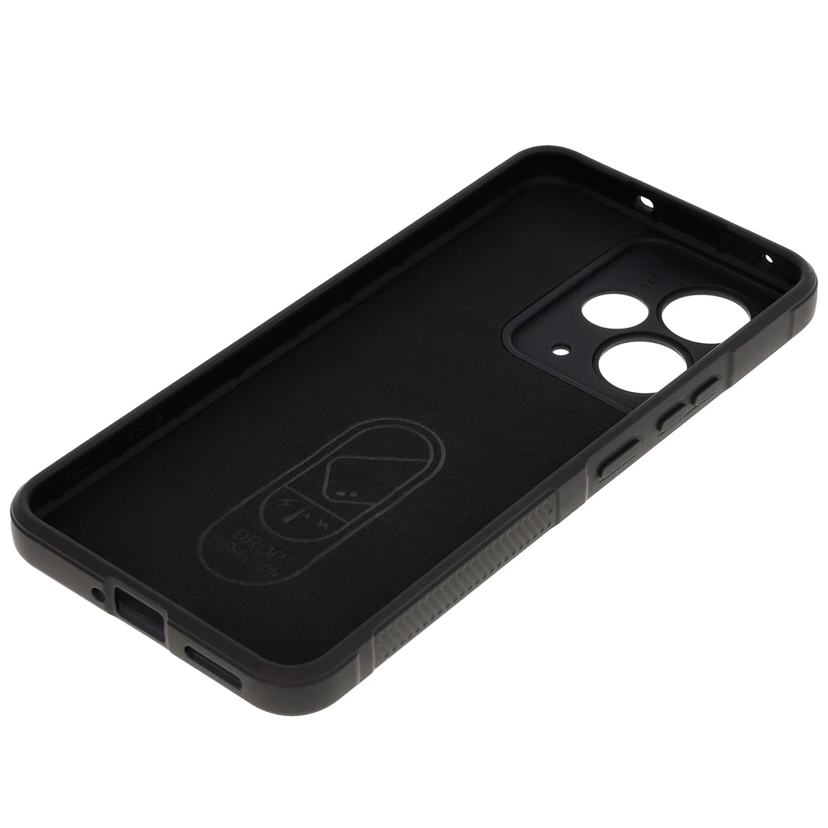Wzmocnione narożniki oraz delikatnie podniesione krawędzie zapewniają dodatkową ochronę, z kolei teksturowane boki pozwalają pewniej trzymać telefon, zapobiegając przypadkowemu wysunięciu się urządzenia z dłoni.