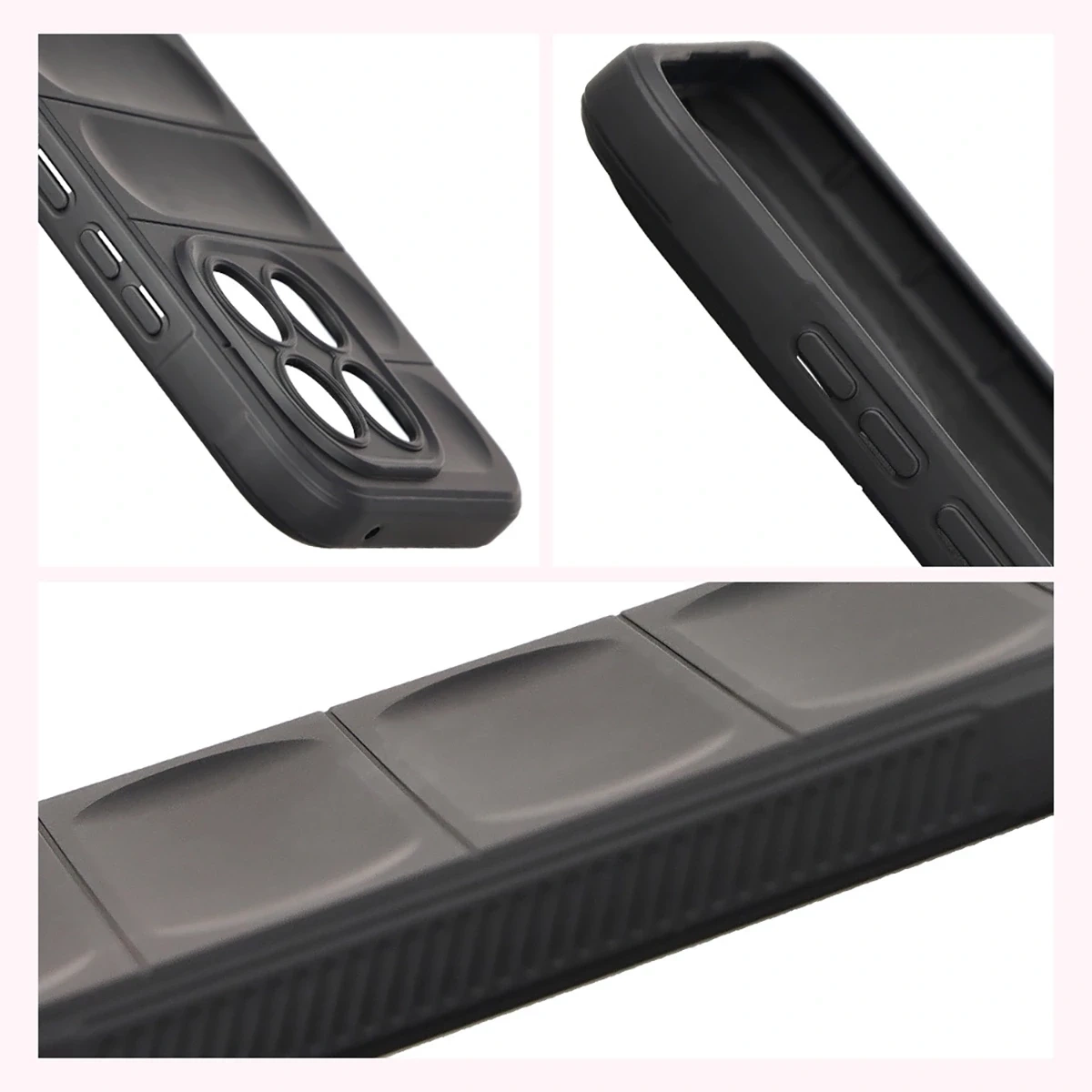 Wzmocnione narożniki oraz delikatnie podniesione krawędzie zapewniają dodatkową ochronę, z kolei teksturowane boki pozwalają pewniej trzymać telefon, zapobiegając przypadkowemu wysunięciu się urządzenia z dłoni.