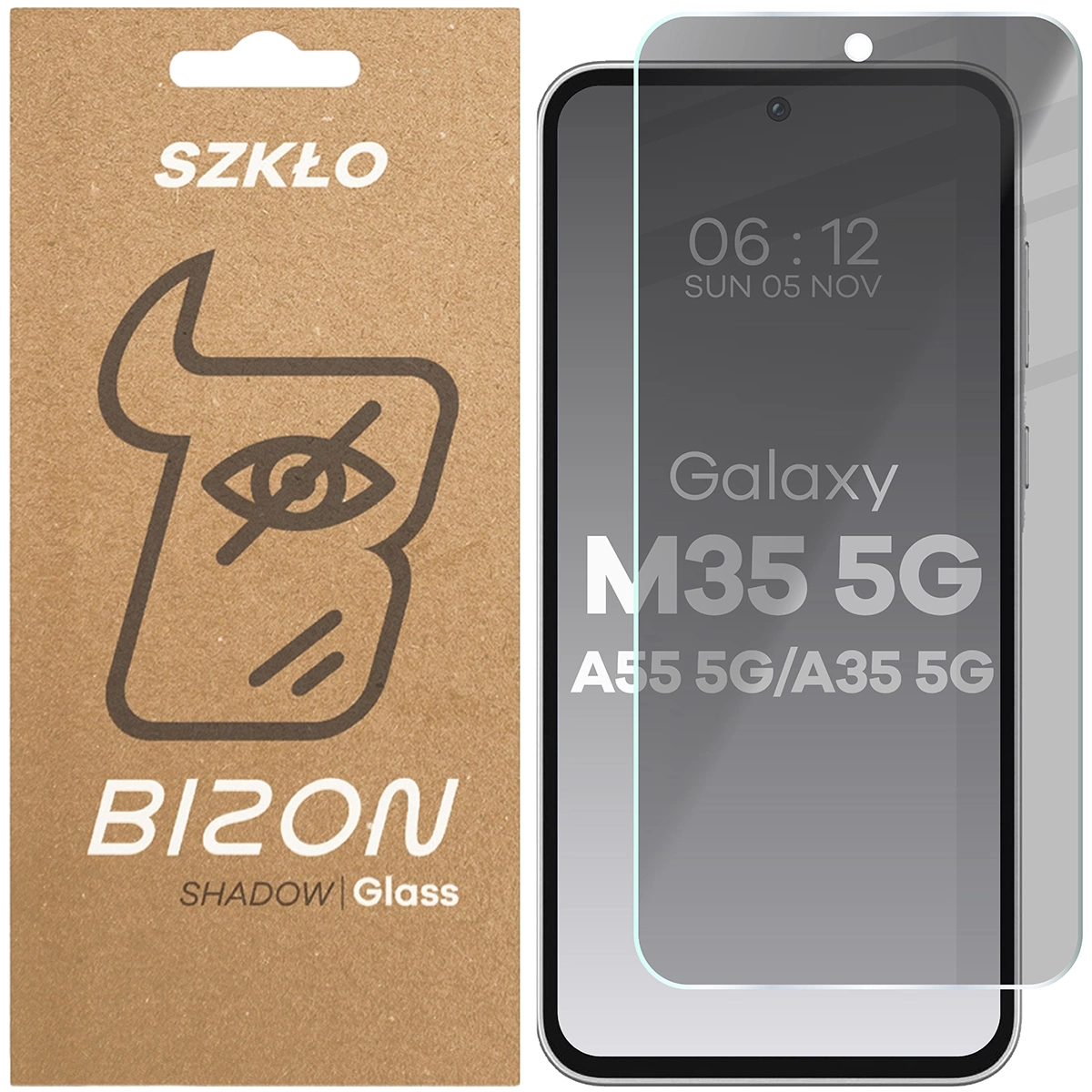 Prywatyzujące szkło hartowane Bizon Glass Clear Shadow do Galaxy M35 5G / A55 5G / A35 5G, przyciemniane