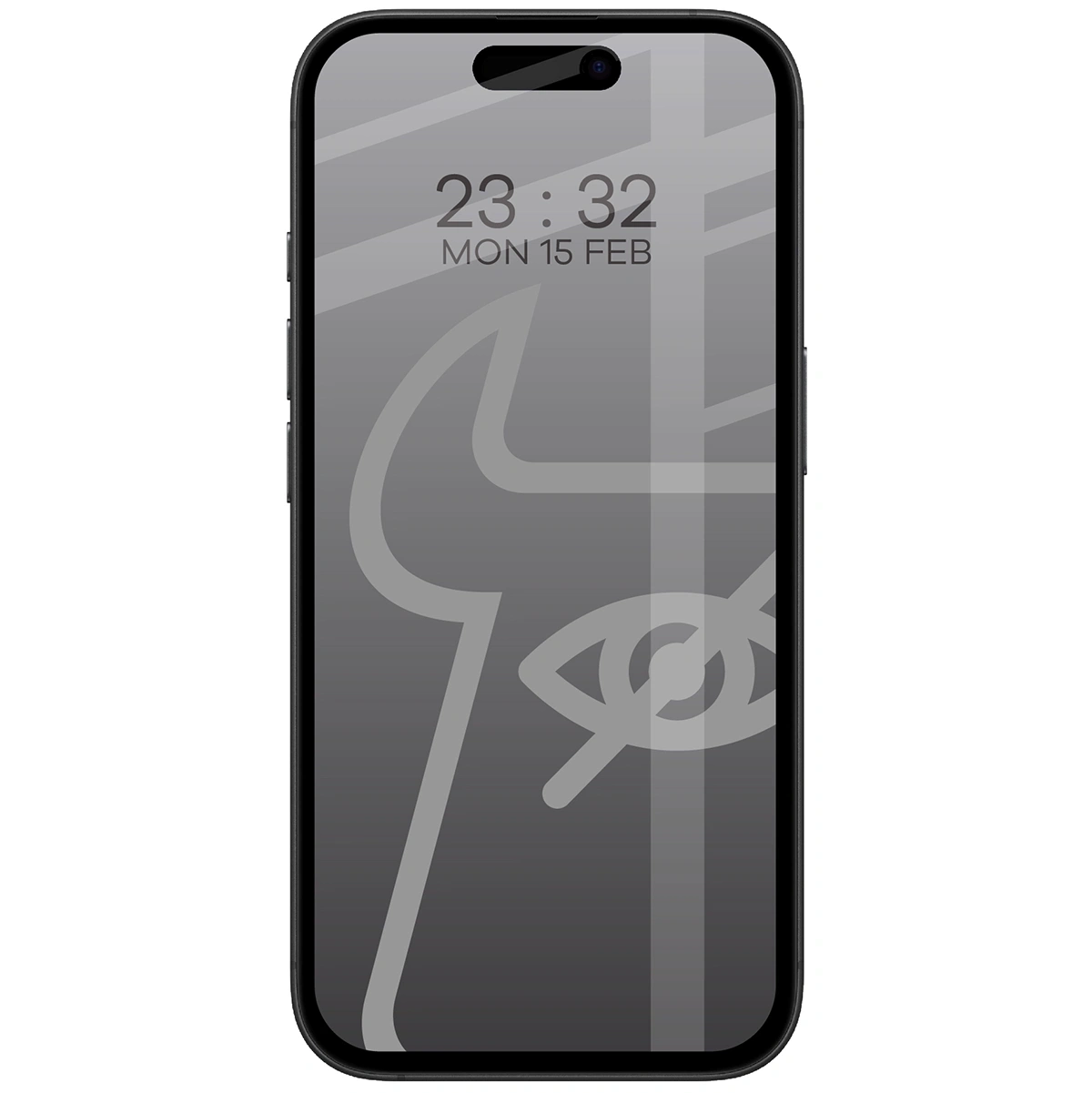 Prywatyzujące szkło hartowane Bizon Glass Edge Shadow do iPhone 16/15, przyciemniane z czarną ramką