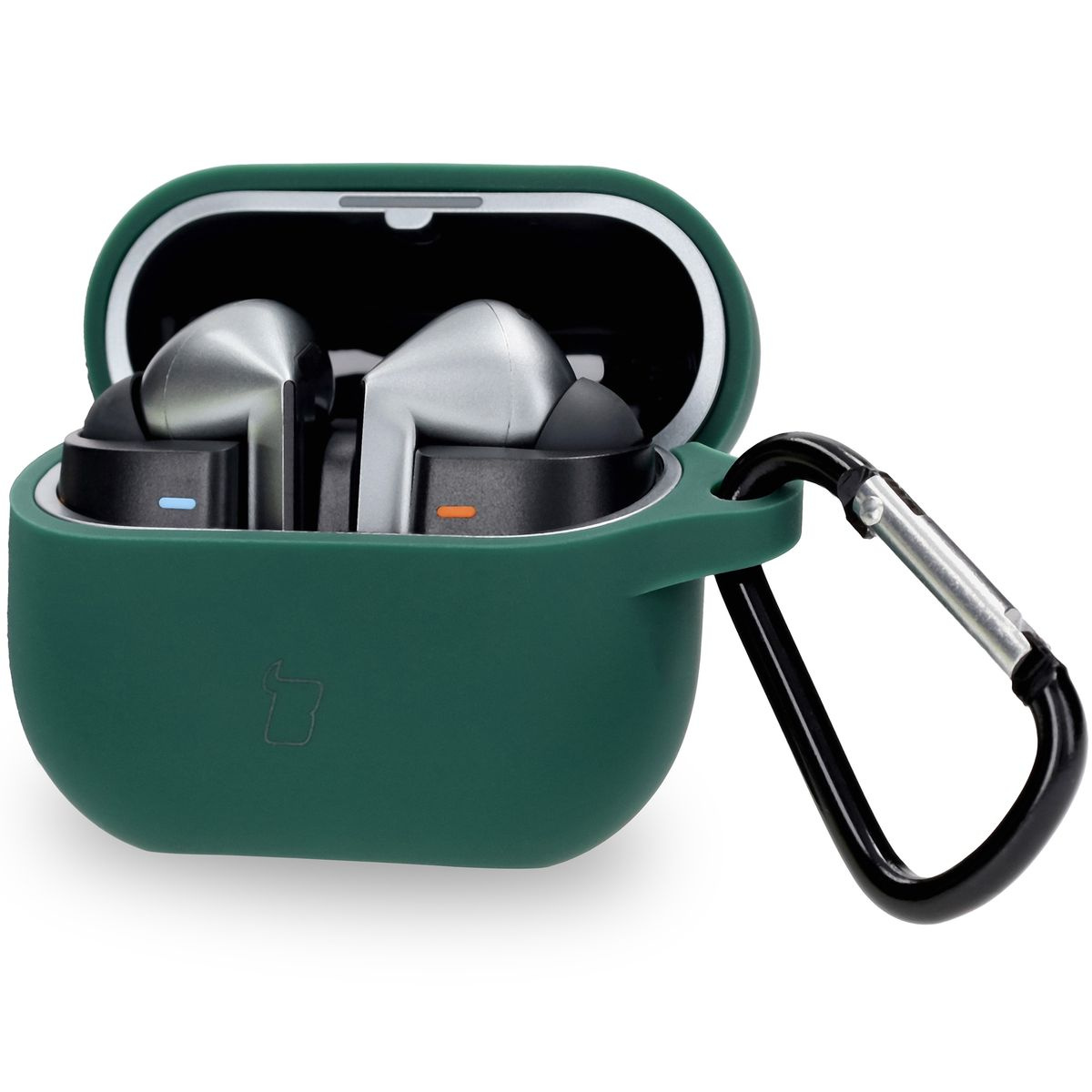 Silikonowe etui z karabińczykiem Bizon Case Headphone Silicone do Galaxy Buds 3/3 Pro/3 FE, ciemnozielone
