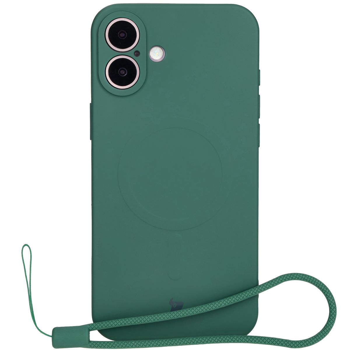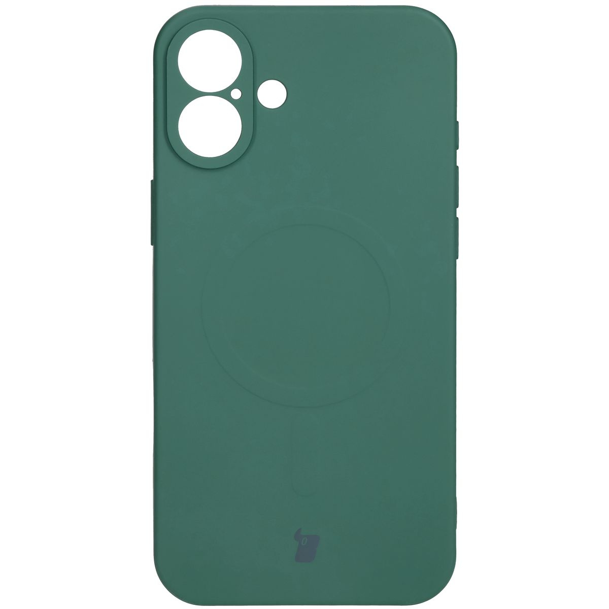 Silikonowe etui z pierścieniem magnetycznym Bizon Case Silicone Magnetic do iPhone 16 Plus, ciemnozielone