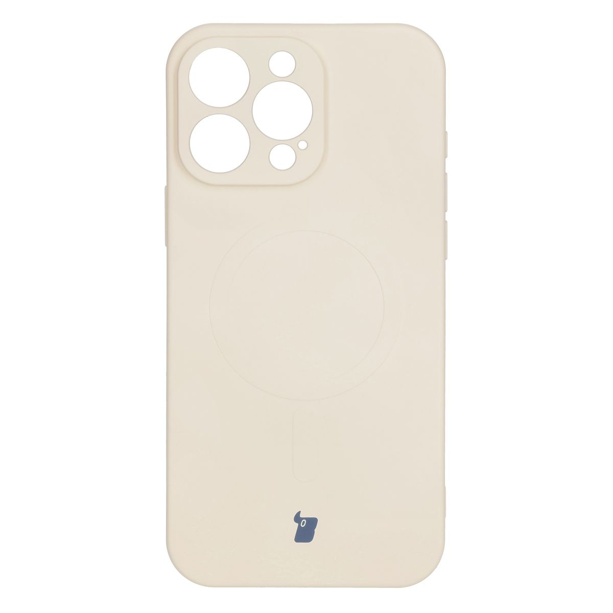 Silikonowe etui z pierścieniem magnetycznym Bizon Case Silicone Magnetic do iPhone 16 Pro, beżowe