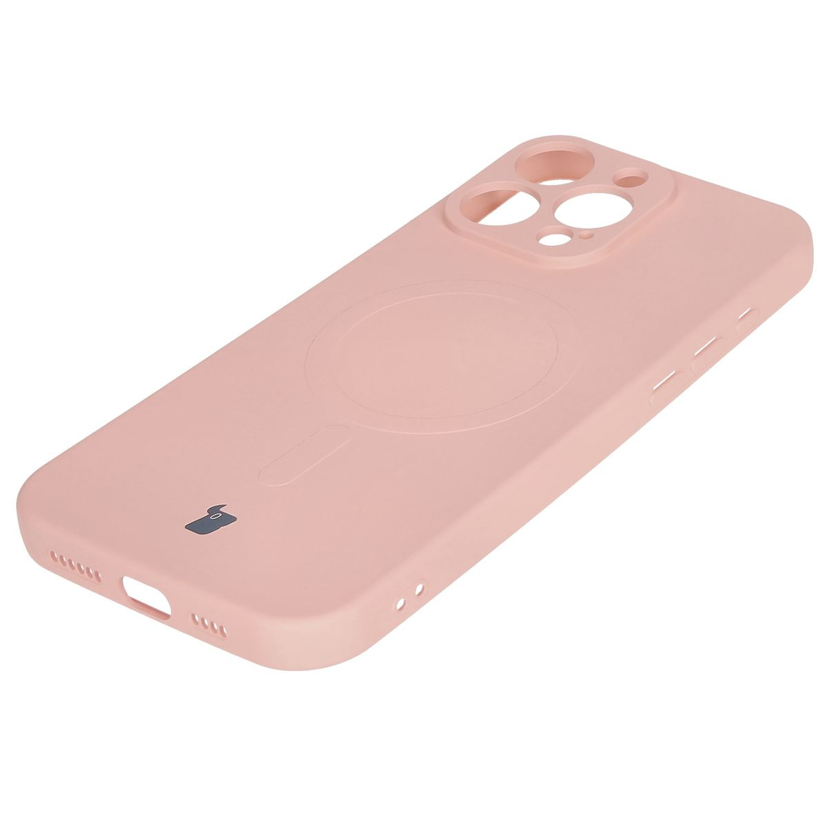 Silikonowe etui z pierścieniem magnetycznym Bizon Case Silicone Magnetic do iPhone 16 Pro, jasnoróżowe