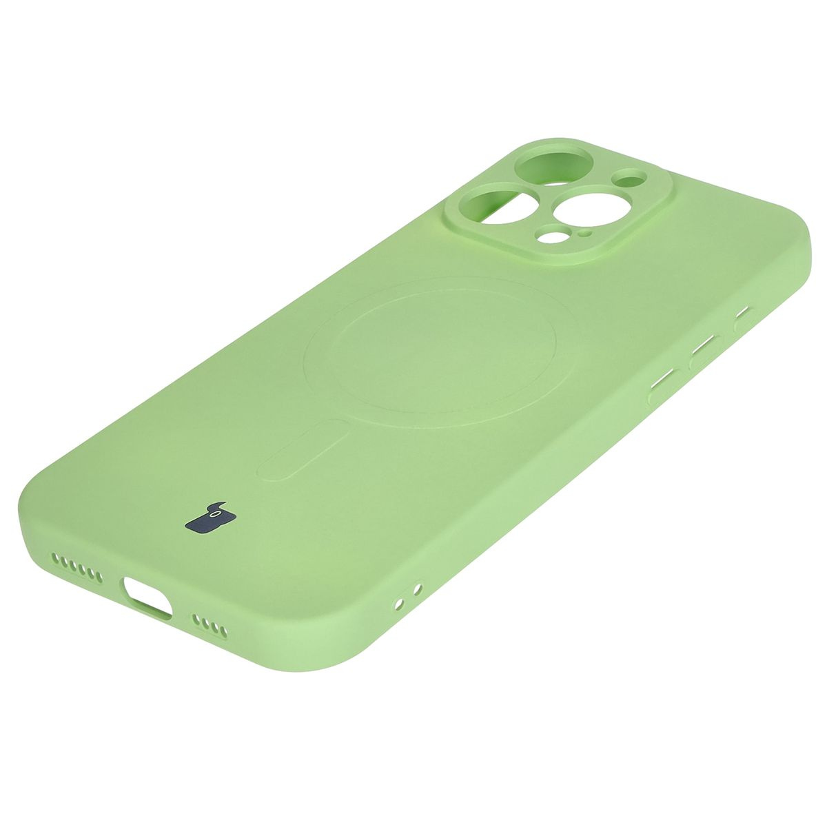 Silikonowe etui z pierścieniem magnetycznym Bizon Case Silicone Magnetic do iPhone 16 Pro, jasnozielone
