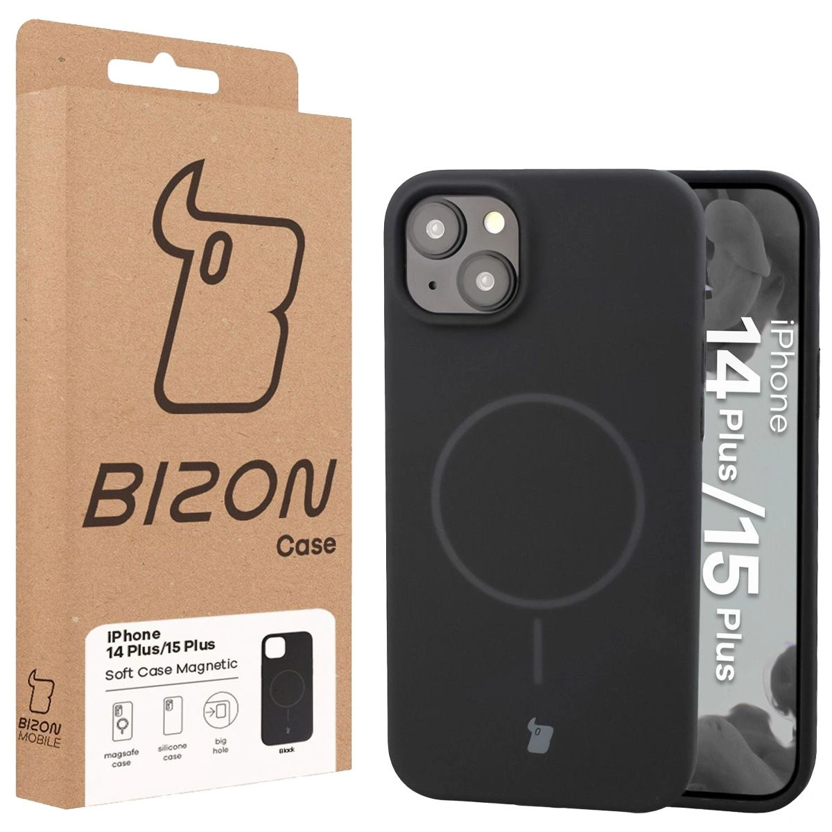 Silikonowe etui z pierścieniem magnetycznym Bizon Soft Case Magnetic do iPhone 15 Plus/14 Plus, czarne