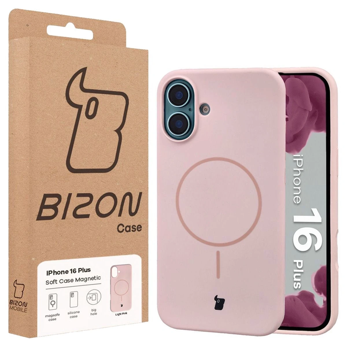 Silikonowe etui z pierścieniem magnetycznym Bizon Soft Case Magnetic do iPhone 16 Plus, jasnoróżowe