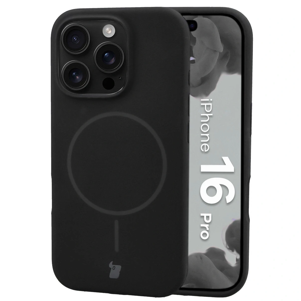 Silikonowe etui z pierścieniem magnetycznym Bizon Soft Case Magnetic do iPhone 16 Pro, czarne